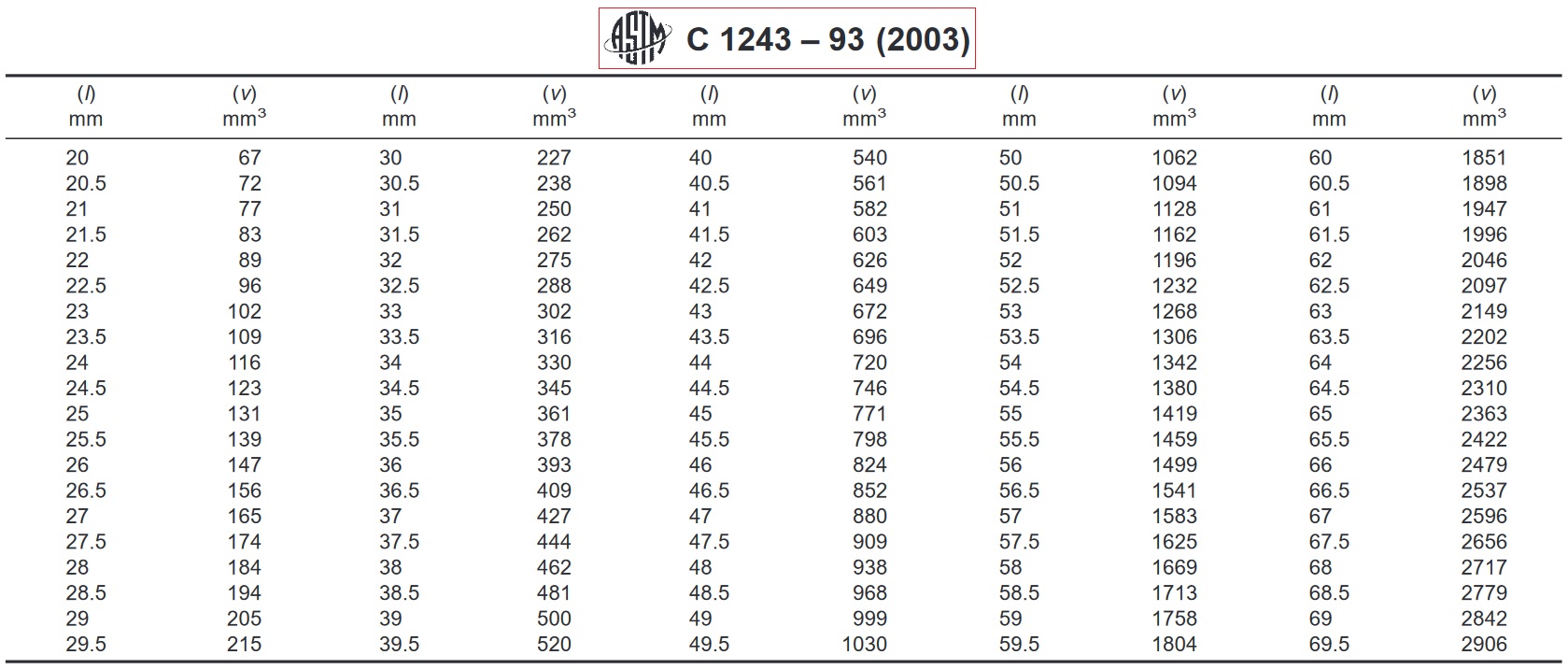 اثري که از سايش چرخ چرخان بر سطح آزمونه بر جاي ميماند، به شکل قطاع کوچکي از ديسک چرخان است که به داخل سراميک فرو رفته است و هر چه ميزان سايش بالاتر باشد (يا ميزان فرو رفتن چرخ چرخان در آزمونه بيشتر باشد)، طولِ اثرِ ايجاد شده بر اثر سايش نيز بيشتر خواهد بود. پهناي ناحية ساييده شده در تمام مقادير به دست آمده براي آزمونههاي مختلف يکسان است چون ضخامت چرخ چرخان ثابت است! با داشتنِ قطر و ضخامت چرخ و نيز طولِ اثر بر جاي مانده بر سطحِ آزمونه ميتوان حجم قطاع (يا همان ناحية کنده شده) را به آساني محاسبه کرد. چون قطر و ضخامت چرخ معلومند، بنابراين با داشتنِ طول اثر (تنها مجهول اين معادله) و تهية يک جدول ميتوان اين حجم را اندازهگيري کرد.